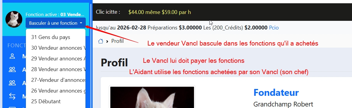 Vancl et Aidant sont des vendeurs, Vancl est chef, Aidant est équipier d'un Vancl |
