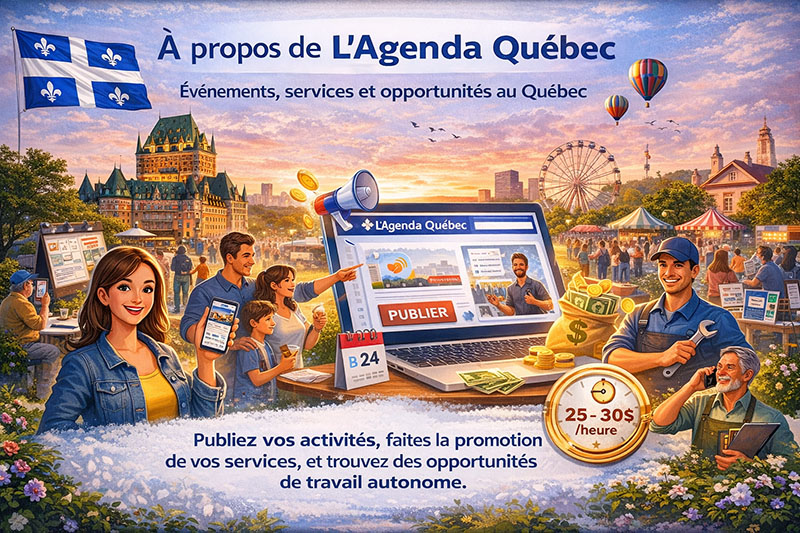 L'Agenda Québec est une plateforme dédiée à la publication d'activités, à la promotion de services et au soutien des commerces et des citoyens de toutes situations.